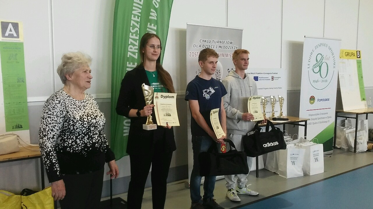 Rozpoczęła się kolejna edycja międzynarodowego cyklu Zostań Szachowym Mistrzem. Ponad stu szachistów z pogranicza Rzeczypospolitej Polskiej i Republiki Czeskiej zjechało dzisiaj do Wiejskiego Domu Kultury w Niemysłowicach pod Prudnikiem. I bardzo miło nam donieść, że jedne z głównych ról w inauguracji polsko - czeskich konfrontacji odegrali zawodnicy Orlika, Antoni Sokołowski i Dawid Pawłowski. Zajęli odpowiednio drugie i trzecie miejsce. A mogło być jeszcze piękniej, gdyby Dawid nie dał się pokonać w piątej rundzie zwycięzcy turnieju, Dominikowi Stępniakowi z LKS Zarzewie Prudnik. Nasze miasto i klub reprezentował też Szymon Sokołowski, brat Antka. Był zadowolony z wyniku. W swojej grupie wiekowej zajął miejsce na początku drugiej dziesiątki. Tradycyjnie bardzo dziękujemy Romanowi Michałkowi, Dziadkowi Antka i Szymona, który umożliwił nam udział w zawodach.